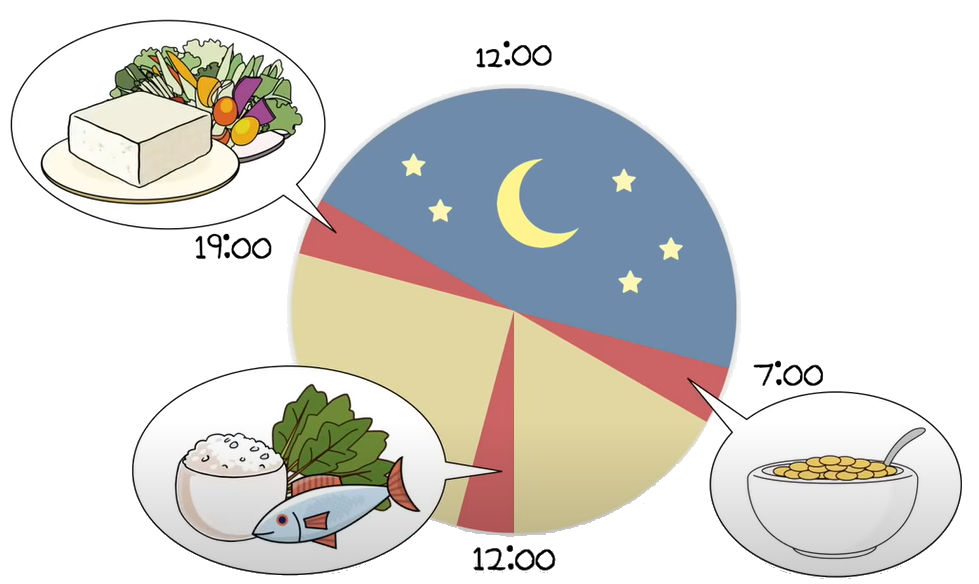 그러면 저녁을 오후 7시에 먹고 아침을 다음 날 오전 7시에 먹는 경우로 설명드려 보겠습니다.