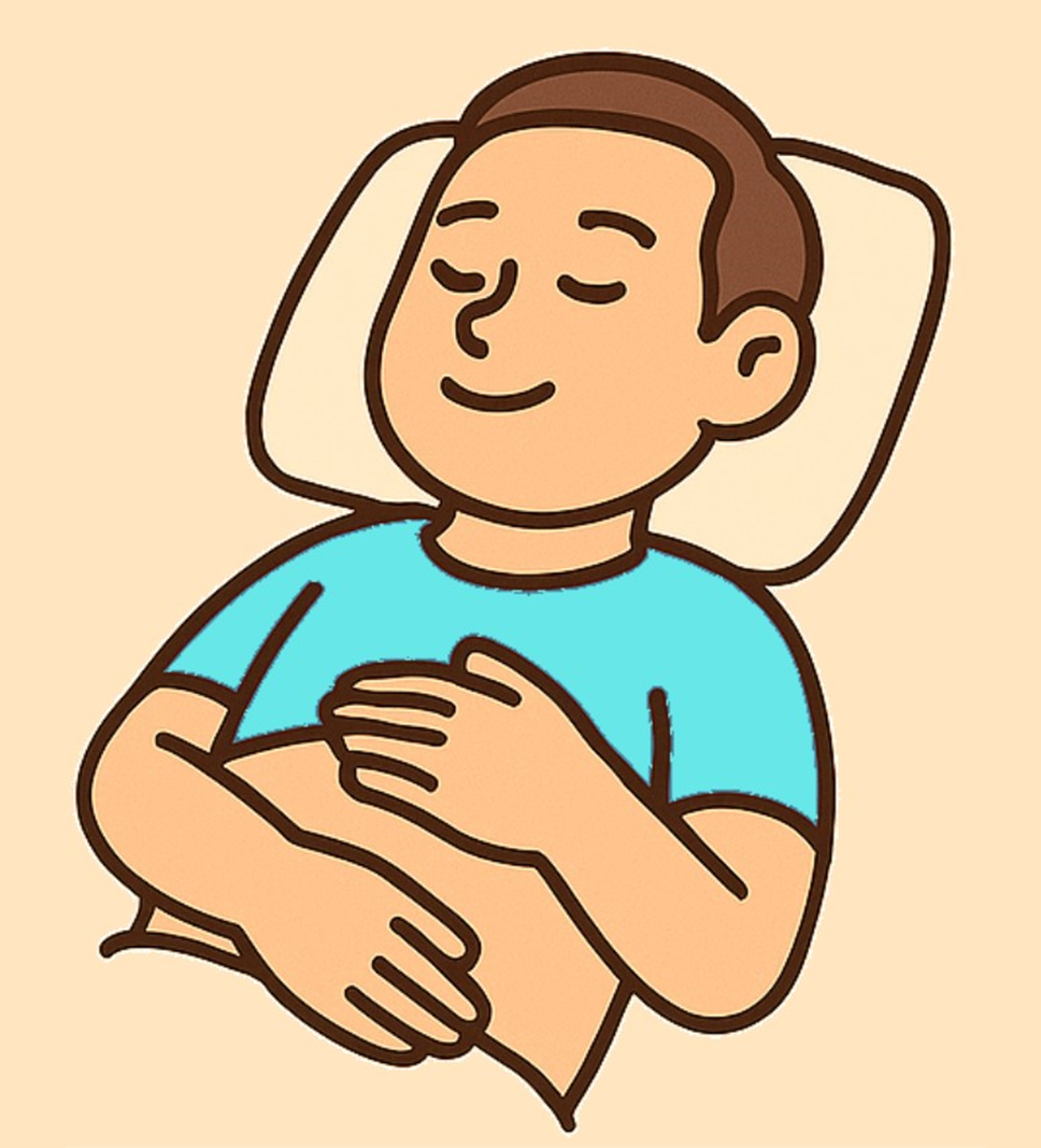 - 양손을 배 위에 올리고