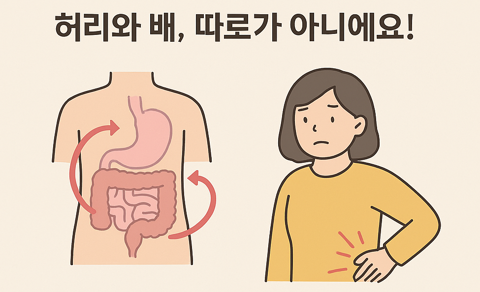 **“왜 배를 만졌는데 허리통증이 좋아질까?”**에 대해 이야기해볼게요.