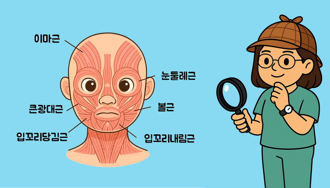| 😊 표정근 | 웃음, 찡그림 | 기쁨, 분노, 놀람, 슬픔 |