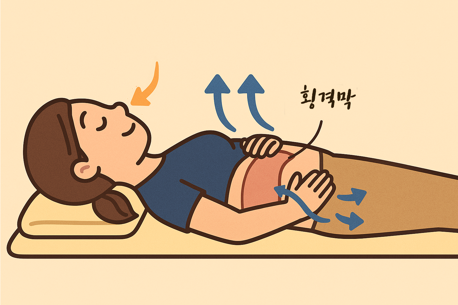 💬 “얕은 호흡은 가슴 위쪽만 움직여요. 배는 거의 움직이지 않죠.”